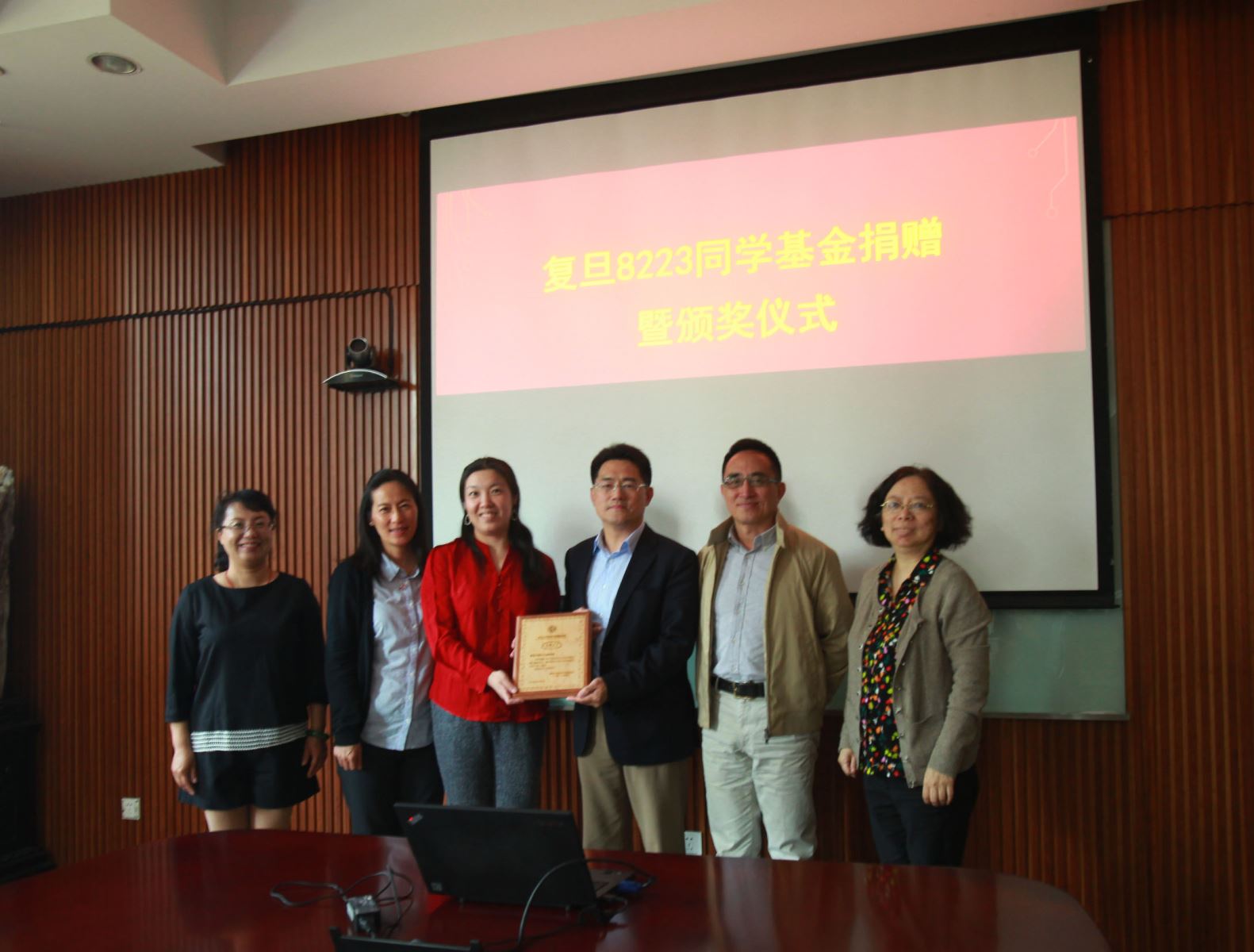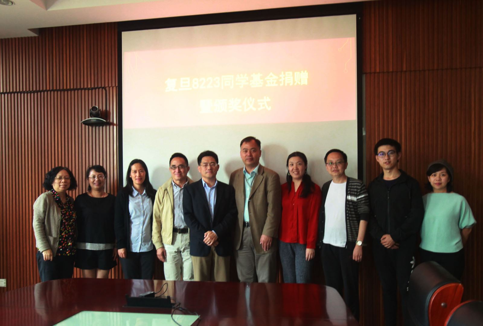 2018年4月25日下午,8223同学基金捐赠暨颁奖仪式在足球外围赔率 A208会议室成功举行,出席本次颁奖仪式的嘉宾有复旦大学对外联络与发展处副处长陆颖丰,足球外围赔率 党委书记陈浩明,学院党委副书记余文博,8223校友代表朱坚、郑建红、陈蕊雯、李瑶,8023校友沈英毅,获助学生代表。会议由余文博副书记主持。
