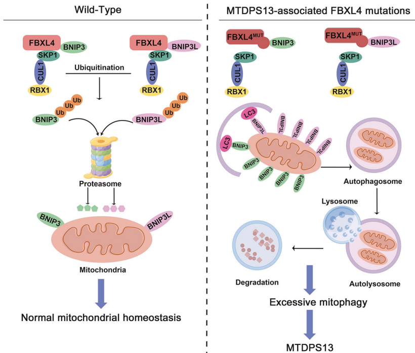 总之,这项工作将从“FBXL4-BNIP3/3L-mitophagy”调节轴的全新角度诠释FBXL4突变引起线粒体DNA耗竭综合征的分子机制,为后续的靶向治疗提供了坚实的理论依据。