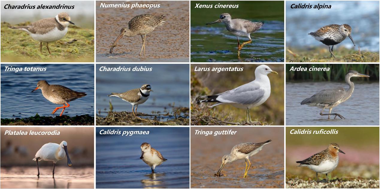 图1 黄渤海滨海湿地部分常见及濒危水鸟(照片由张树岩、Andrey Gulivanov、Vassiliy Vishnevskiy、Paul Hoekman、kajornyot 、JMrocek等拍摄,均已获授权使用或为开源图片)